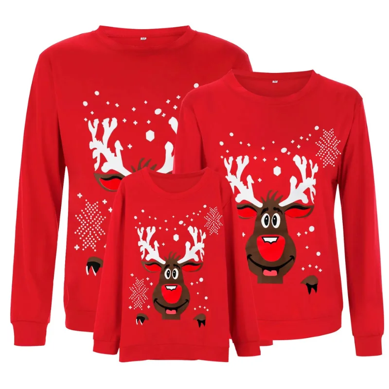 Pull de Noël Assorti Famille Motif Renne Rouge : Un look festif pour toute la famille