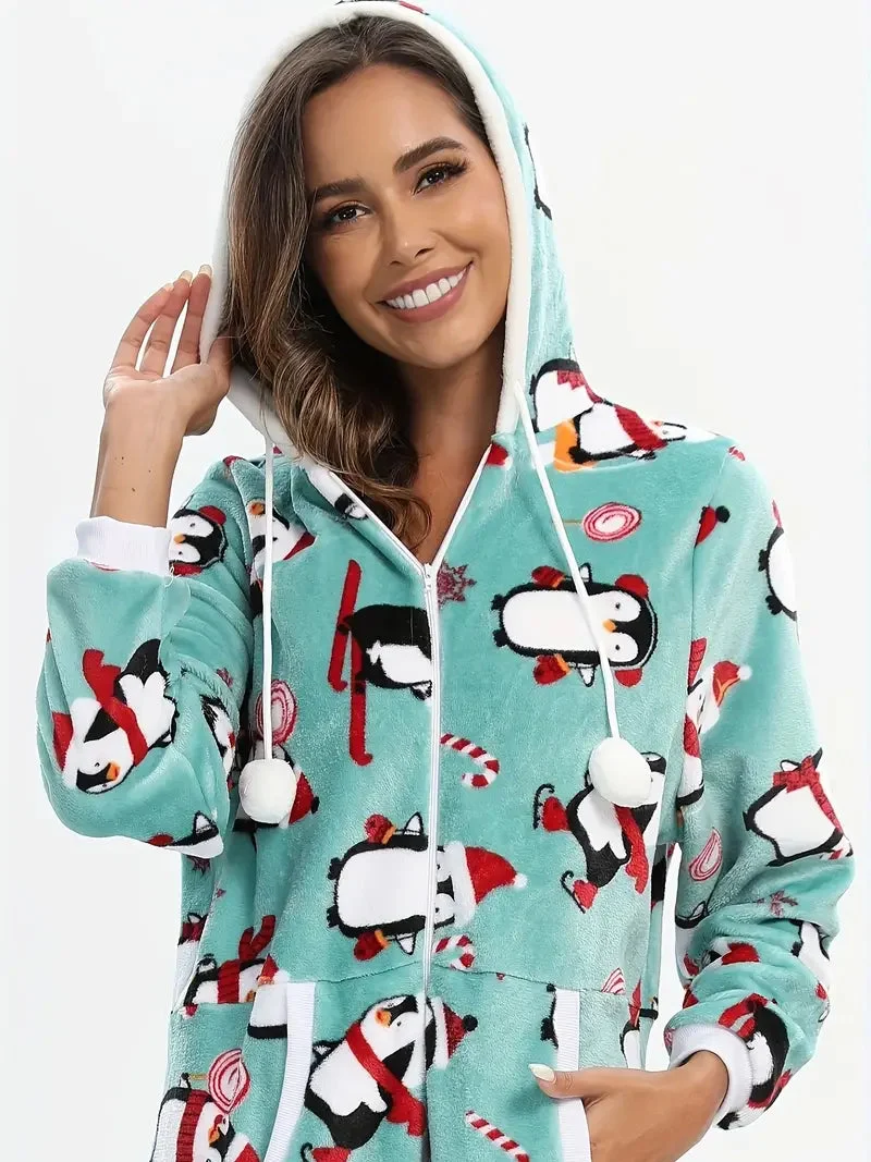 Combinaison Pyjama Femme Noel Motif Pingouins : Confort et Élégance Festive